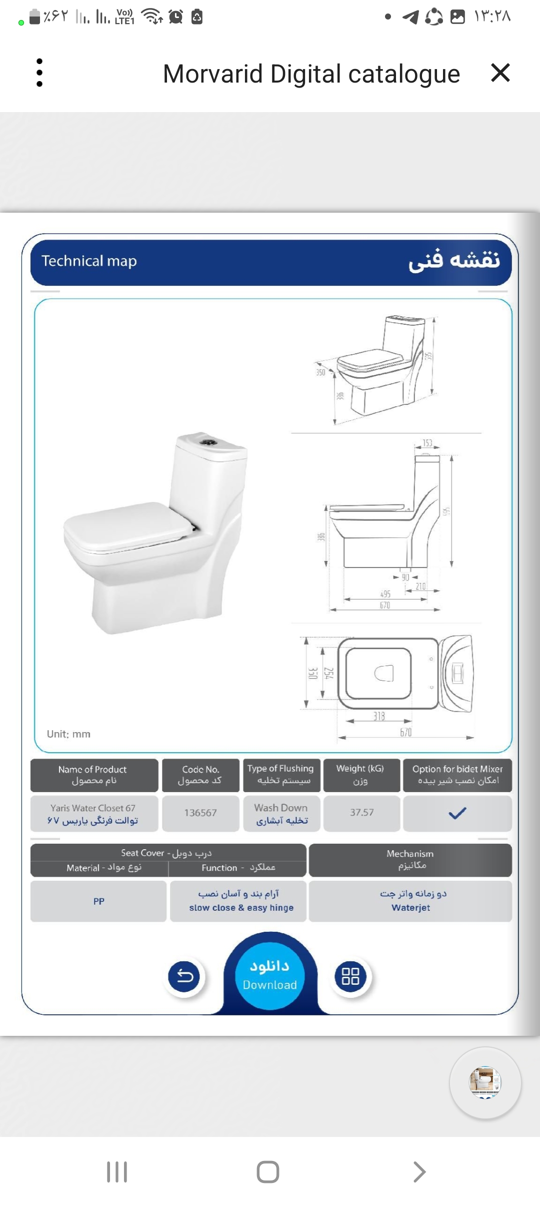 توالت فرنگی مروارید مدل یاریس درجه ۳